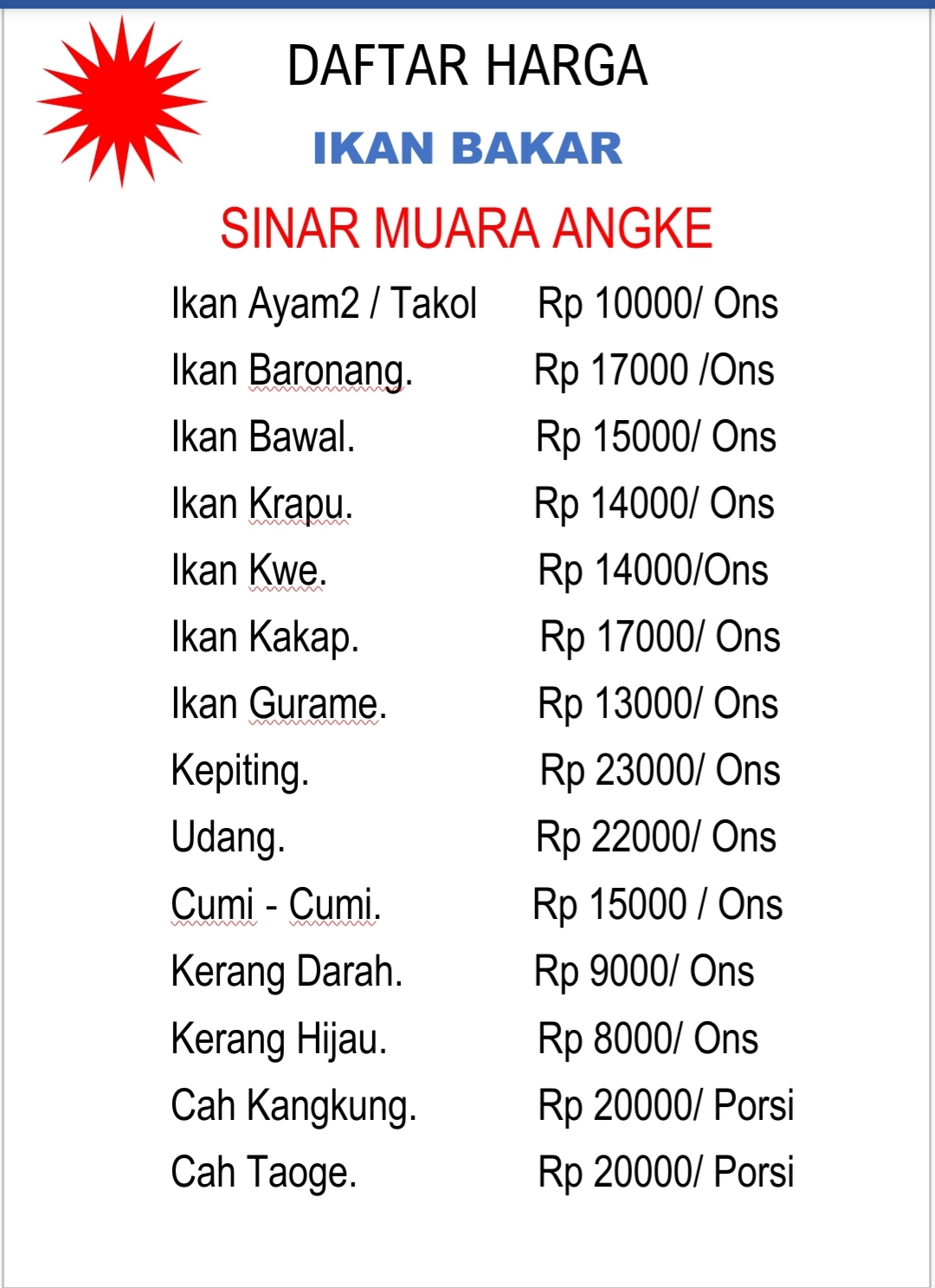 Daftar Menu IKAN BAKAR SINAR MUARA ANGKE Kenikmatan Hidangan laut di atas laut CUMI SAUS PADANG UDANG BAKAR Lanjutkan membaca “Daftar Menu”